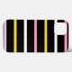 Listras clássicas em cores rosa, ouro amarela e branca contra fundo preto.