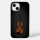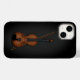 Este charmoso trabalho de arte é uma ilustração detalhada de um violino e arco que parece um instrumento musical minúsculo tridimensional sentado sobre sua capa de telefone. Um novo trabalho de arte criado por E. Motoyama em março de 2023.