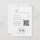 This elegant wedding RSVP card features refined black typography on a clean white background, paired with a hand-drawn hydrangea illustration for a timeless, romantic finish. Designed to coordinate perfectly with a modern minimalist wedding suite, it includes space for guest names, attendance selection, number of guests, and a reply-by date. A discreet QR code option allows guests to respond online via your wedding website, combining classic stationery with modern convenience. Fully customisable to suit traditional, botanical, or contemporary weddings.