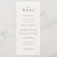 A refined and modern wedding menu with clean minimalist typography and soft neutral tones. Designed with generous white space and an elegant, understated layout, this simple menu card complements contemporary and classic wedding styles alike. Personalise with your courses, drinks, and event details to create a cohesive and stylish addition to your wedding reception table settings.
