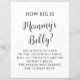 Mantenha os convidados engajados e entretidos com este sinal de "Como é Grande a Cintura das Mamães?", desenhado num estilo minimalista branco e preto elegante. Apresentando uma tipografia limpa e uma estética moderna, este cartaz de folha de papel favorável ao orçamento é a adição perfeita a qualquer tema neutro, neutro em termos de gênero ou de chá de fraldas contemporâneo. Os convidados vão adorar adivinhar o tamanho da barriga da futura mãe — apenas fornecer corda ou fita e deixar a diversão começar! Descubra mais jogos de chá de fraldas e atividades divertidas na loja! c) Paperie fina somerset