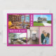 Cartão de anúncio minimalista, elegante e movente com 5 fotos personalizadas e os textos "Nós nos movemos!" & "Venha nos visitar logo!" na frente + o novo endereço, "Por favor, ligue primeiro", números de telefone e nomes nas costas para você personalizar. Fundo cor-de-rosa chic, moderno, com escrevendo branco na frente.