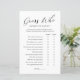 Entretenimento com seus chás de fraldas convidados com este jogo 'Adivinhem quem?', com um design minimalista com elegante caligrafia negra.