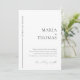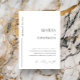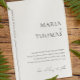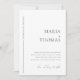 Convite de casamento simples e minimalista com tipografia preta personalizável num fundo branco.