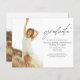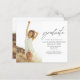 Formando de Graduação Orçamentária Cartões de Anúncio que têm uma foto (duas fotos) na frente e no verso, assim como o nome da escola, ano de graduação, local, hora e planos futuros. Os convites para a graduação do Segundo grau ou da Classe Universitária 20XX contêm uma tipografia cursiva moderna, escrita à mão, que é elegante, simples e moderna para usar depois de você ter um dia minimalista de realização simples do formando.
