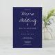 Um convite de casamento para um microcasamento. Este convite é feito em azul escuro e branco com informações suficientes para ganhar o dia. Simplesmente adicione suas informações, adicione este convite ao seu carrinho e aproveite o seu casamento pequeno e íntimo.