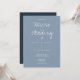 Um convite de casamento para um microcasamento. Este convite é feito em azul e branco com informações suficientes para ganhar o dia. Simplesmente adicione suas informações, adicione este convite ao seu carrinho e aproveite o seu casamento pequeno e íntimo.