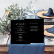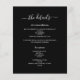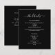 Um moderno e elegante programa/programa/cronograma de casamento. Um fundo negro. Personalize e adicione seus nomes e detalhes do casamento. Letras brancas coloridas. Texto de ambos os lados. 1 folha = 1 programa impresso borda a borda.