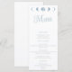 Elevem sua experiência de jantar de casamento com nosso cartão de cardápio de casamento da Minimalista Moon Phases Azuis Celestial. Essa design exude simplicidade e elegância, apresentando um cenário branco limpo que acentua o tema celeste. Na parte superior do cartão de menu, as cinco fases da lua são exibidas em uma bela cor azul clara, adicionando um toque celeste à sua cola. O texto no cartão de menu é uma mistura de fontes de blocos de cinza clara e fontes de script azuis, criando uma aparência moderna e na moda. Quer você seja um amante do céu noturno, um entusiasta da astronomia, ou simplesmente aprecie a beleza das fases da lua, este cardápio é perfeito para você. É uma maneira maravilhosa de compartilhar sua paixão por temas celestes com seus convidados e adicionar um toque pessoal à decoração do seu casamento. A design minimalista e nítida deste cartão de cardápio de casamento torna-o versátil e adequado para uma variedade de estilos de casamento. Quer você esteja planejando um janto formal ou uma recepção ao estilo de um buffet, este cartão de menu irá complementar seu tema de casamento de forma magnífica. Defina o tom para uma experiência de jantar inspirada no celestial com o nosso cartão de cardápio de casamento da coleção azul Celestial de Fases da Lua Minimalista.