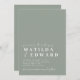 A tipografia mínima moderna, a escrita ousada, sage convite ao casamento verde.