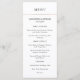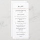 Este menu de casamento moderno e elegante apresenta texto preto sobre fundo branco, com uma falso tira de ouro rosa no topo.
