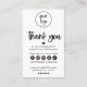 Um obrigado elegante, moderno e chic de negócios para você pelo seu cartão de pedido. Os ícones das mídias sociais podem ser excluídos ou movidos clicando em "personalizar mais" enquanto personaliza. Simples e moderno com uma fonte de script. Mude a cor dos corações, estrelas e ícones das mídias sociais, se desejar.