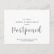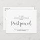Este é o design moderno minimalista simples e limpo temático, em fonte preta, cartão postal de reprogramação de festa de casamento (adiado / adiamento) (adiado). É a maneira perfeita e elegante de fazer o anúncio de reprogramação para amigos e familiares.