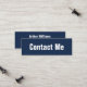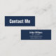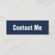 Este mini cartão de visita diz "contacte-me" na frente da cartão de visita. A parte traseira do mini cartão de visita pode ser personalizada com seu nome e informações de contato. Este mini cartão de visita azul escuro tem texto branco.