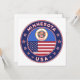 Crachá de Minnesota com bandeira de Minnesota e bandeira dos EUA cores, forma arredondada. Emblema de Minnesota. Selo de Minnesota. Coleção dos Estados Unidos.