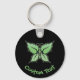 Ícone de borboleta composto por folhas verdes de menta. Cor de fundo personalizada. Texto personalizado de ambos os lados.