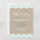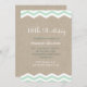 Este 18º Convite de Aniversário está em um fundo de burlap ilustrado e acentuado com chevrons verdes da menta. É apresentado no documento de base; no entanto, recomendo o peso e a textura do papel de linho para uma melhor aparência de burlap.