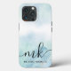 Mata simulada e fundo de mármore azul com monograma e nome personalizados.