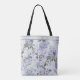 Head to the market in style with this large tote in a dreamy blend of violet, lilac, and spearmint green, creating a fresh and sophisticated palette. The arrangement features delicate watercolor botanicals including lush hydrangeas in soft purple hues, fragrant lilac clusters adding vintage charm, and graceful morning glories with their distinctive trumpet blooms