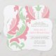Vintage Modern Mint Green Peach com Convite para Casamento de Texto Rosa e Cinza. Pastel Pink e Green Vintage Moderno Victoriano Damask Rococo Barroco Floral Patterns Damask Swirl Perfeito para Casamento Barroco Rococó, Renascença Medieval, Art Deco Art Nouveau, Roaring 20s Gatsby, Ou Elegante Farmhouse Themes.