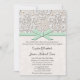 Lace de safena e burlap finos de linho parecem convites para casamento com um antigo local úmido vitoriano e pérolas e design de fita e arco impressos com verde de menta. Adicione o monograma do casal e os nomes à parte de trás deste convite elegante e de senhora. Projetado e criado por Chrissy H. Estúdios, LLC. Todos os direitos reservados.
