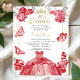 Desmascarar o encantador fascínio da sua celebração da quinceanera com convites únicos e vermelhos. Estes convites feitos à prova, inspirados por flores vermelhas e borboletas brancas, não apenas estabelecem a antecipação do evento, mas também apontam o deslumbrante vestido vermelho de quinceanera. Eles estão completados com detalhes de confete e um sotaque de tiara, incorporando a grandeza celebratória do dia especial.
