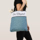 Esta bolsa de tote é mostrada com um impressão brilhante Dusty Aqua Blue. Tem uma banda Azul Aqua Dusta Claro no topo com seu título personalizado, nome ou frase favorita. Tamanho médio mostrado. Tem pulseiras negras. Personalize este item ou comprar conforme projetado.