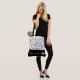 Esta bela sacola de vanguarda mostra uma coroa prateada brilhante e seu nome/título/pageante personalizado embaixo sobre o preto com o saco de tote superior em branco com vidros negros e rolhas por toda parte. Os gráficos e o texto estão em ambos os lados desta bolsa de tote. Alça preta. Personalize mais ou mais comprares, conforme mostrado.