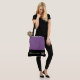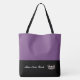 Este na moda grande saco de totes bonitinho é mostrado em um estilo de bloco de cores roxo e preto com uma coroa de paginação e texto personalizado. Personalize este item e altere o texto para o seu.