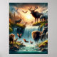 Mística Terra Selvagem Cascata Fantasia Poster