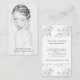 Cartão de visita de fotógrafo com toque elegante e uma foto personalizada na frente com seu nome e título em estilo vertical. No verso, as informações comerciais estão na mesma fonte serif elegante com bordas florais superiores e inferiores em cores poeirentas de cinza.