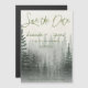 Misty Romantic Forest Trees Casamento Salve A Data. Casamento simples e elegante Guarde os cartões de data para um casamento temido por árvores florestais. O design tem um fundo de ilustração de árvores de floresta aquarela e o texto escrito em uma fonte bonito de script. Esses cartões salve a data clássicos simples são perfeitos para anunciar seu grande dia. Mande essas cartas elegantes para a família e amigos. Personalize as cartas mudando os nomes da noiva e do noivo e a data do casamento. Para mais personalizações, contacte-me em mypaperlove.2021@gmail.com