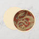 Ilustração vintage de criatura mitológica apresenta um dragão japonês ou chinês dourado art nouveau em um círculo vermelho. Na Ásia, o dragão pode ser um símbolo de boa fortuna ou boa sorte. Semelhança com uma serpente marinha com nadadeiras ou um lagarto animal réptil.