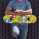 Os crânios legal e coloridos super, aperfeiçoam para um miúdo do skate…