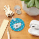 A engraçada Moa da Vaca e o Chaveiro de Padrão de Bolinhas Azul e Branco são totalmente personalizáveis. O tamanho da imagem, o texto e a cor do plano de fundo podem ser alterados clicando no botão "Personalizar".