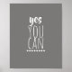 Motivação citando poster em ousada e moderna cinza de tendências e tipografia branca arte vocal sim você pode para decoração de arte em parede