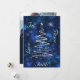 Os suportes modernos sparkly de prata de um redemoinho da árvore de Natal contra um floco de neve e uma estrela azuis vívidos encheram o fundo na parte dianteira deste cartão de Natal liso do modelo da foto. Igualmente na prata, a alegria das palavras, a paz, o amor, e a fé são dispersados em torno da beira. A parte traseira do cartão tem sua própria fotografia na parte superior, com dois campos para seu texto feito sob encomenda na parte inferior. Um cartão personalizado muito moderno e elegante do feriado! nota do *Please - a imagem é imprimida e o cartão não contem o brilho real.