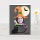 A bruxa do Halloween adiciona seu próprio cartão de saudação de modelo fotográfico.. com chapéu de bruxa engraçado, morcego e lua e cheio de coisas assustadoras em um fundo preto... vem completo com envelopes brancos... cartões de saudação de Ricaso algumas imagens com licença da CU delightful-doodles.com