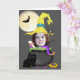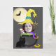 A bruxa do Halloween adiciona seu próprio cartão de saudação de modelo fotográfico.. com chapéu de bruxa engraçado, morcego e lua e cheio de coisas assustadoras em um fundo preto... vem completo com envelopes brancos... cartões de saudação de Ricaso algumas imagens com licença da CU delightful-doodles.com