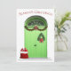 Esta design de Natal tem portas duplas verdes com uma janela de paládio. Há várias terras verdes abaixo da janela, uma coroa em forma de árvore na porta direita e uma bolsa de Papais noeis cheia de presente nos degraus. Personalize o texto no cobrir, remova qualquer texto ou clique em personalizar para selecionar um estilo de fonte, tamanho e cor diferentes.
