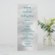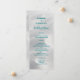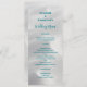 Modelo de cardápio de casamento para uma recepção temática na praia. Imagem de fundo de areia branca com texto azul tropical. O título do menu está na fonte do script manuscrito e o restante é texto impresso. Os primeiros nomes da noiva e do noivo estão no topo e as seleções de menu estão listadas em um parágrafo para personalizar facilmente seu evento. Escolha qualquer estilo de papel ou use a opção de download instantâneo.