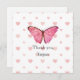 Design cor-de-rosa e branca com uma borboleta cor-de-rosa brilhante obrigado seu modelo. Pronto para personalizar com seu próprio texto.