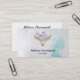 Cartões de visitas com um fundo de turquesa e de aquarela pastel. Um crânio bicho-papão com um buquê floral sobre sua cabeça e pequenas borboletas fluindo sobre isso. modelo de cartão de negócios