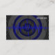 Design moderno e estilizado inspirado em auto-falantes e ondas sonoras. As ondas sonoras azuis brilhantes se movem através de círculos concêntricos em cinzas, preto e azul. Modelo de cartão de negócios com um design personalizável para você personalizar com seu próprio texto, imagens e ideias. O texto pode ser facilmente alterado usando os modelos fornecidos ou clique no botão 'Personalizar o texto' para fazer outras alterações. Arte original criada usando técnicas digitais por Jess Perry.