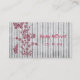 Este modelo de cartão de negócios bonito é feito em um bordado que olha o estilo dos gráficos, com flores e borboletas contra um fundo cinzento resistido da listra. Personalize com sua informação na parte dianteira e de volta ao terno suas necessidades. Mude o estilo do texto, cor, tamanho, e adicione mesmo mais campos do texto se você precisa.