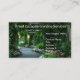 O modelo de cartão de negócios apropriado para landscapers, jardineiro, grupos e manutenção da jarda, lojas da fonte do jardim, fotografia dos berçários etc. da planta caracteriza um mandril de madeira grande de luxe drapejado com clematis de florescência e as videiras verdes luxúrias. Uma passagem do enrolamento alinhada com as plantas de fundamento de florescência generosa plantadas conduz o olho abaixo do trajeto do jardim. Personalize com seus nome da empresa e informações de contacto.