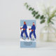 Uma imagem estilizada de duas pessoas esquiando contra um pano de fundo azul da montanha. Você pode personalizar este Modelo de cartão de negócios de instrutor de esqui projetado profissionalmente para qualquer indivíduo ou empresa.