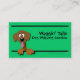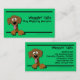 Este cartão de visita verde bonito do cão dos desenhos animados vem em um bloco de 100 e caracteriza uma cara e as patas do cão dos desenhos animados. Olha como um filhote de cachorro ou um cão que esperam o quando você obtem a casa. Faz um grande cartão para seu negócio de passeio do cão, ou para groomers do cão, baby-sitter do cão, ou veterinários. Você pode igualmente usá-lo para sua informação pessoal se você apenas ama cães! Personalize adicionando seus nome e nome da empresa na parte dianteira. O modelo faz fácil personalizar também com sua informação na parte traseira.