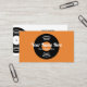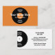 Modelo de cartão de negócios do jóquei de disco do disco-jóquei do DJ da música. Modelo de cartão de negócios do logotipo do registro de vinil. Design de cartões feito sob encomenda da visita. Refrigere o ícone retro com tipografia moderna para o nome e o slogan. Fundo alaranjado ou feito sob encomenda da cor. Os cartões de visitas profissionais para profissões relacionaram-se a e trabalhos no entretenimento e na indústria musical. Disponível em tamanhos diferentes, na espessura de papel e no canto redondo corte a forma. Mude a quantidade para obter o preço maioria barato do bloco. Obtenha umas ideias mais criativas e a inspiração livre em nossa loja original. Cartões pessoais para o músico, a indústria de rádio, o estúdio de gravação, o produtor, o professor de música, o músico de jazz, o clube de dança, o disco, o executor, a banda, o bar, o café dos azuis, o bar, o restaurante, o clube, as lições, o proprietário empresarial, o trabalhador independente, o chefe da empresa, os trabalhadores do co, os funcionarios do partido, os pessoais e os empregados. Impresso em ambos os lados.
