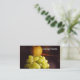 Este cartão de visita do salão ou restaurante exibe uma exibição animadora de um punhado de uvas verdes recentemente colhidas em uma mesa de madeira com uma maçã no fundo do chão. As costas têm um design floral simples. Todo o texto pode ser personalizado para atender às suas necessidades individuais de negócios